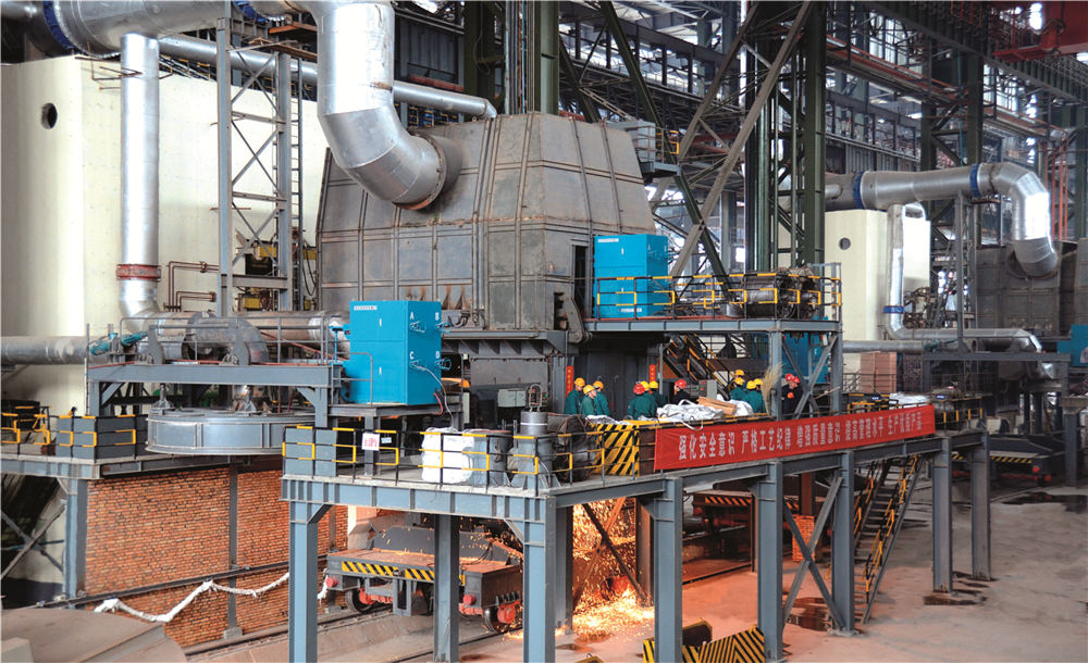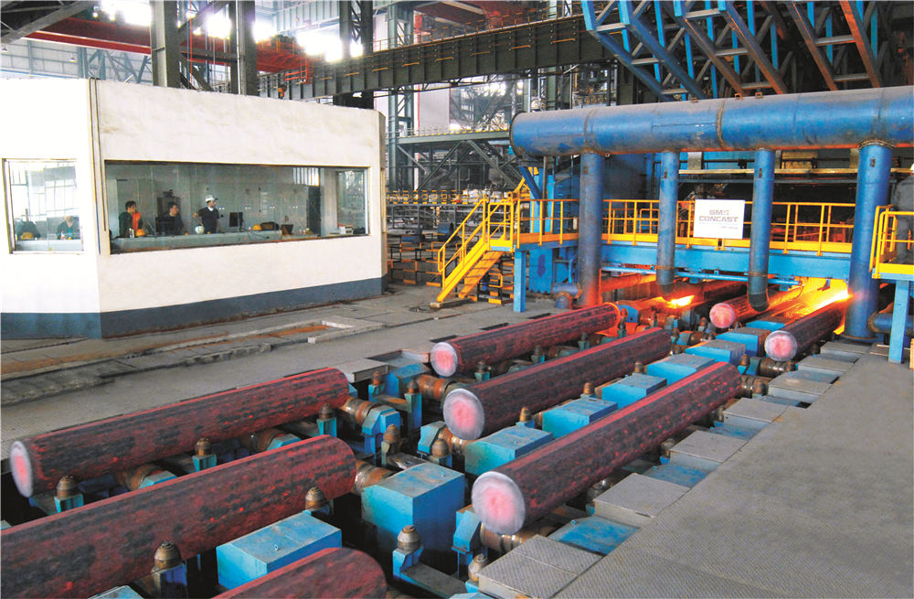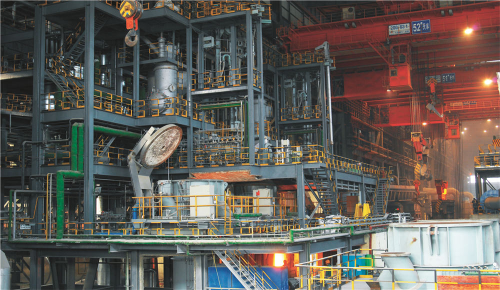 煉鋼系統(tǒng)擁有1300噸混鐵爐一座、120噸雙工位KR脫硫裝置一座、120噸頂?shù)讖?fù)吹轉(zhuǎn)爐兩座、60噸頂?shù)讖?fù)吹轉(zhuǎn)爐兩座、120噸LF精煉爐四座、120噸RH精煉爐兩座、60噸LF精煉爐四座、合金熔化爐兩座、60噸VD精煉爐兩座,全球弧形半徑最大,Φ500mm~Φ1300mm的特殊鋼大圓坯連鑄機,合金鋼小方(圓)坯連鑄機,合金鋼大方(圓)坯連鑄機(引進瑞士康卡斯特),八機八流、七機七流、六機六流、五機五流連鑄機各一臺,具備年產(chǎn)500萬噸鋼的生產(chǎn)能力。